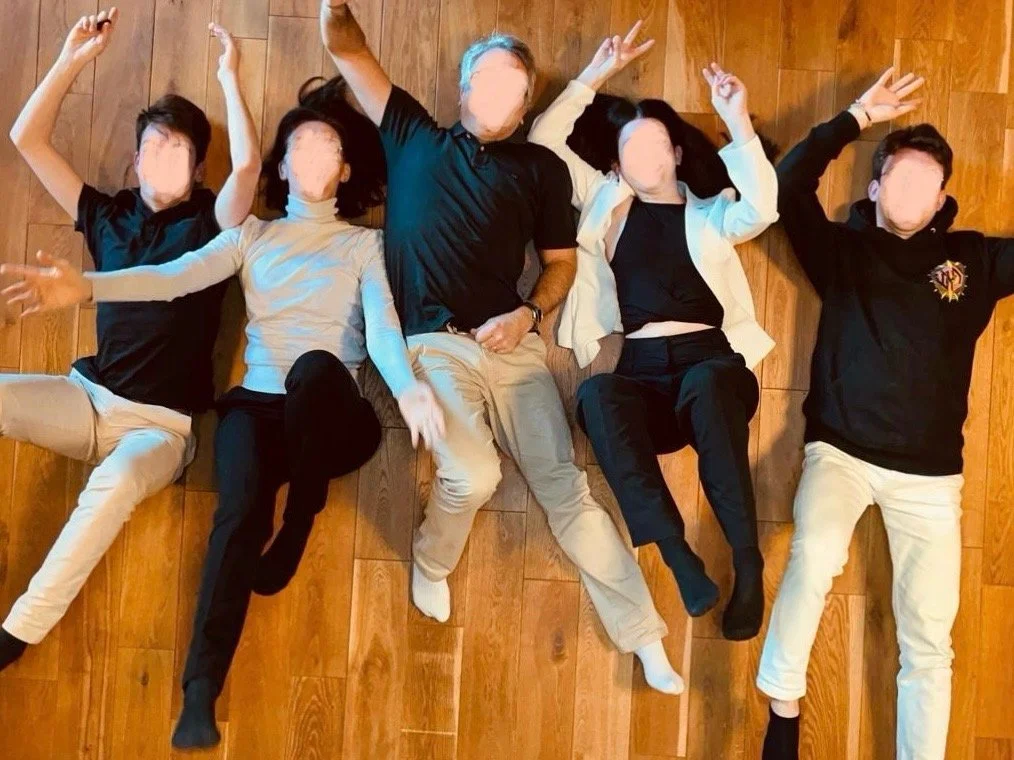 Pour Noël, la famille de Sophie ont offert à leur fille et son mari le portrait de leur famille. Les couleurs ont été fixées selon tonalités d’un autre tableau et devaient retranscrire le plaisir d’être ensemble.